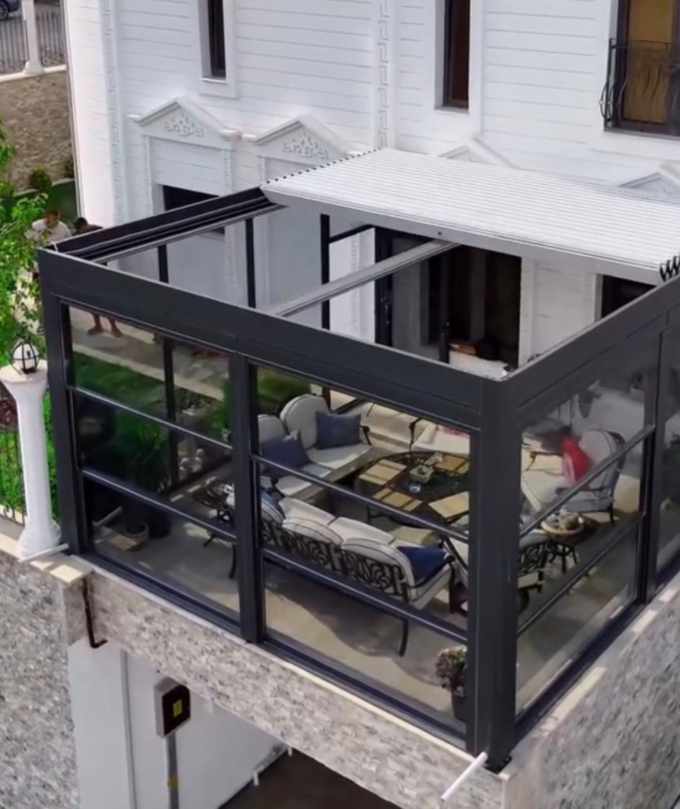 Motorlu giyotin cam sistemi ise dikey hareket eden cam panelleriyle alanı açıp kapatmayı son derece pratik hale getirir. Manzarayı kesmeden rüzgâr, yağmur ve toza karşı mükemmel koruma sağlar. Otomatik çalışma sistemi, güvenlik sensörleri ve estetik tasarımıyla açık alanlara modern bir dokunuş katar.