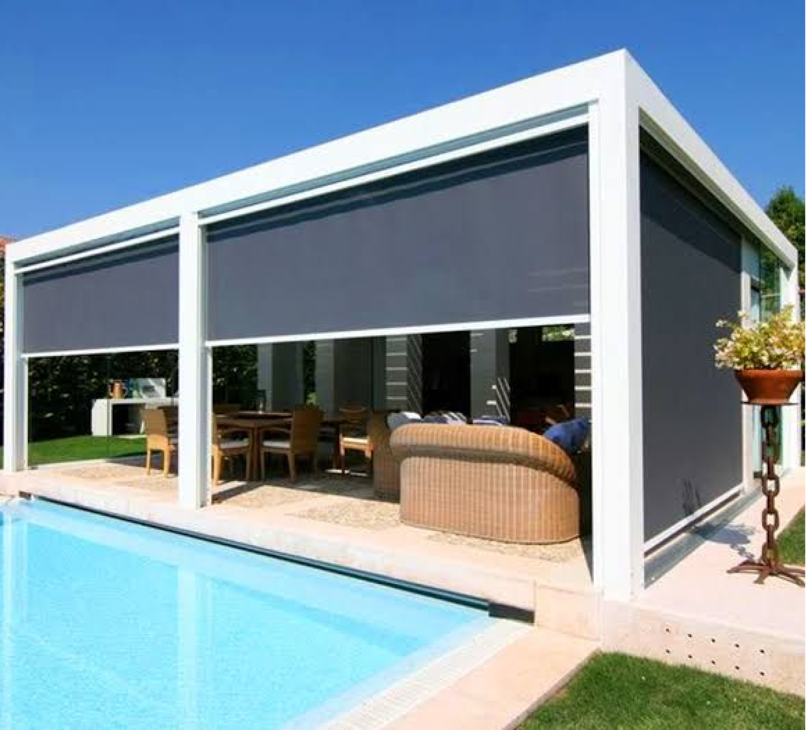 Güneş Işığını Gölgeleme: Her mevsim kullanılabilen zip perdeler, güneş ışınlarını gölgeleyerek iç mekanlarda konforlu bir atmosfer oluşturur.